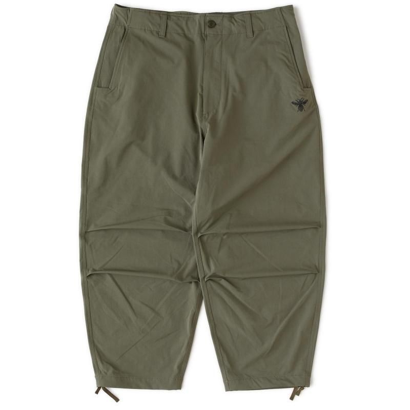 伸縮性の高いナイロンストレッチ素材を使用したワイドパンツ。