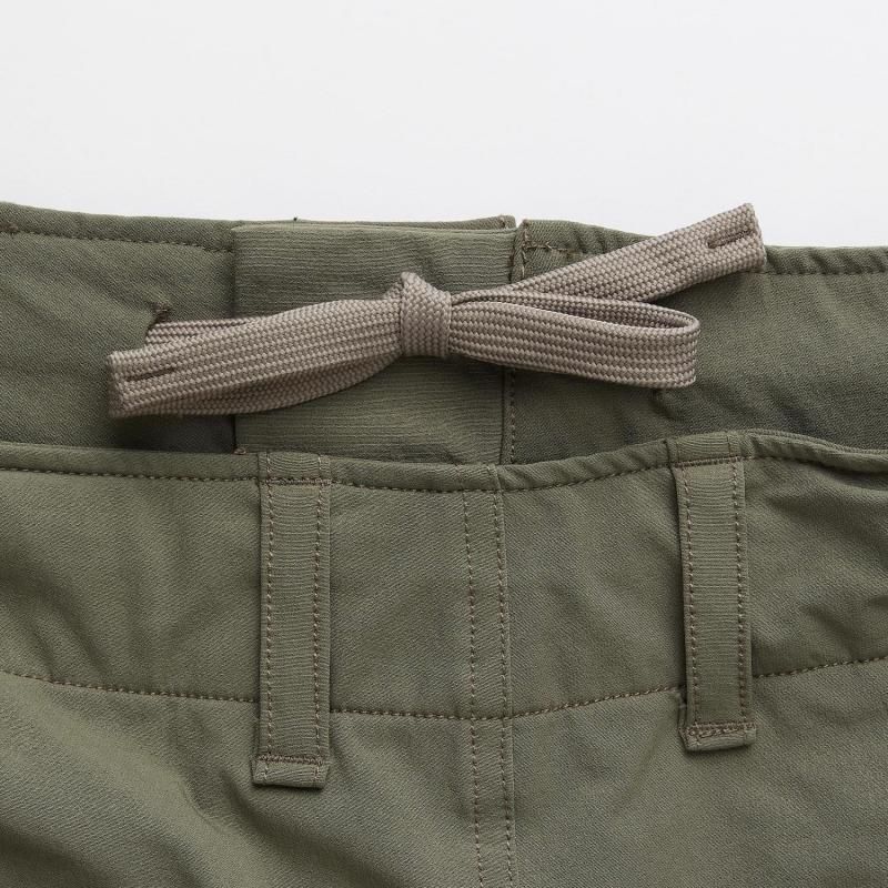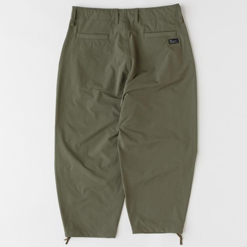 股上を深くし、渡りを広くとることによりヒップから膝にかけてボリュームを持たせたテーパードラインに加え、ニータックを入れることで、よりボリューム感のある独特なシルエットが魅力。