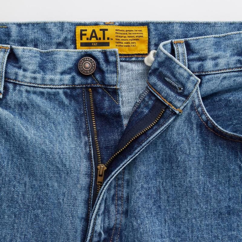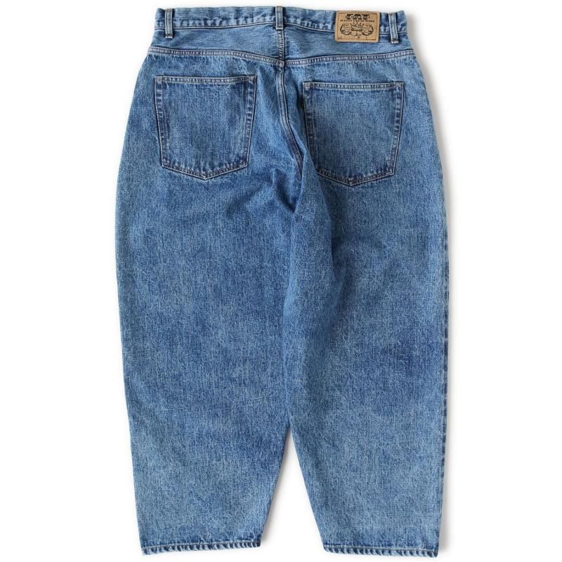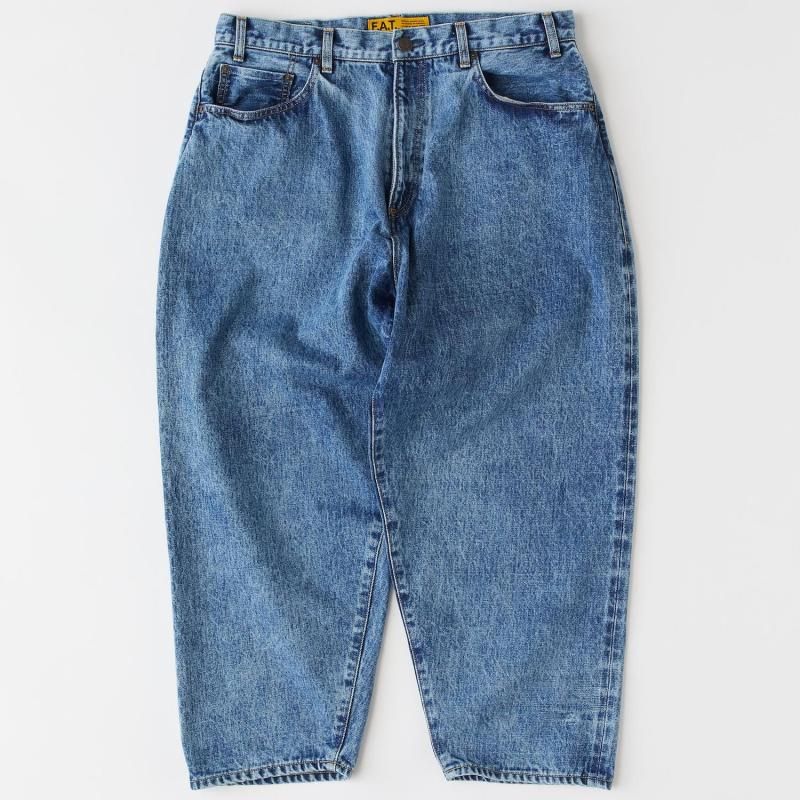 F.A.T.のこだわりが詰まったオリジナルデニム“247”をベースに、ヒップまわりから裾にかけてボリュームをもたせることで、よりワイドシルエットを実現した5ポケットパンツ。