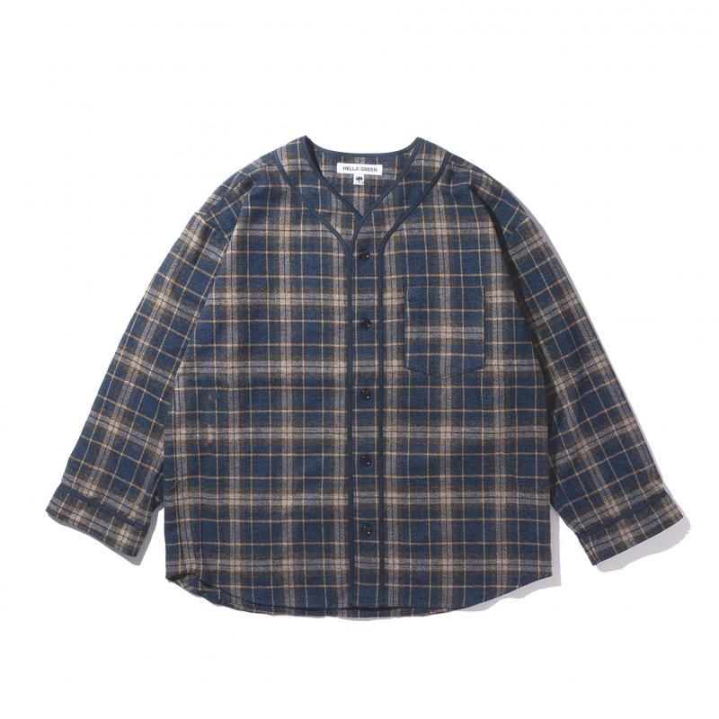 HELLA GREEN / Flannel Baseball Shirts (NAVY)